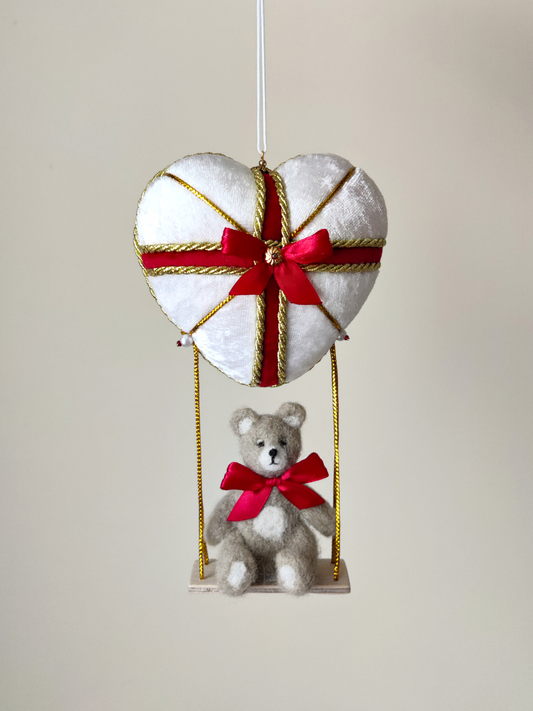 Rankų darbo eglutės žaisliukas "Meškiukas ant supynių"