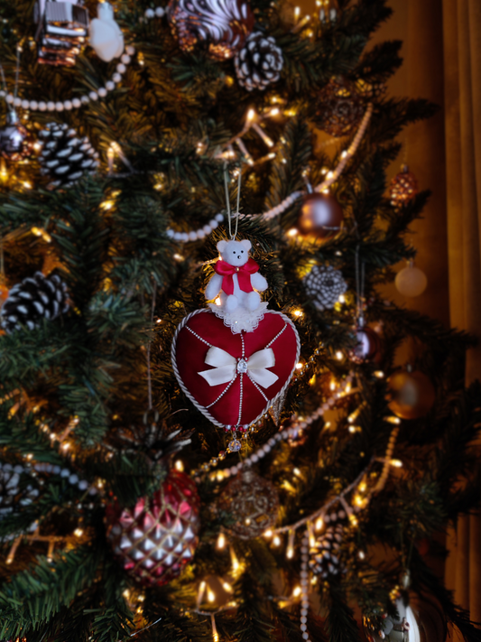 Rankų darbo eglutės žaisliukas "Meškiukas su širdele"