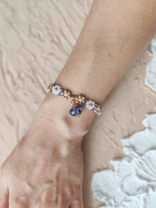 Čekiško stiklo karoliukų apyrankė su rugiagėlėmis