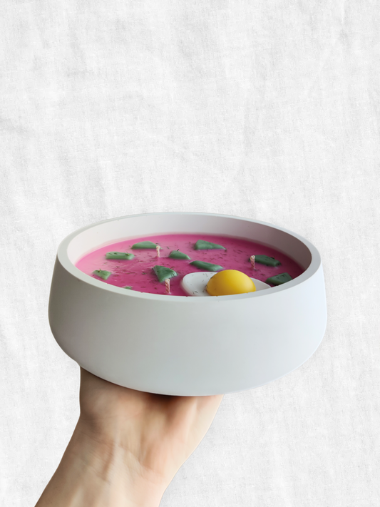 Rankų darbo sojų vaško žvakė "Šaltibarščiai"