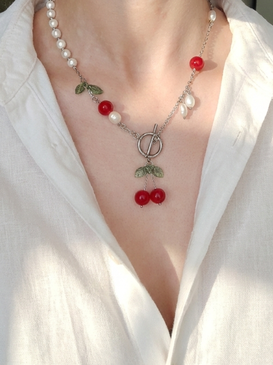 Vėrinys su stiklo ir gėlavandenių perlų detalėmis "Vyšnios"