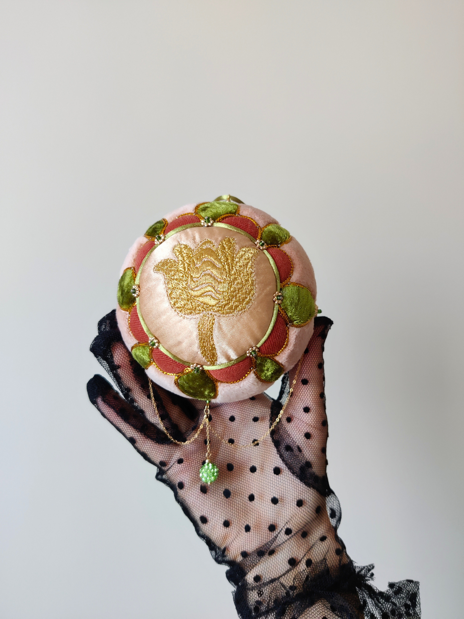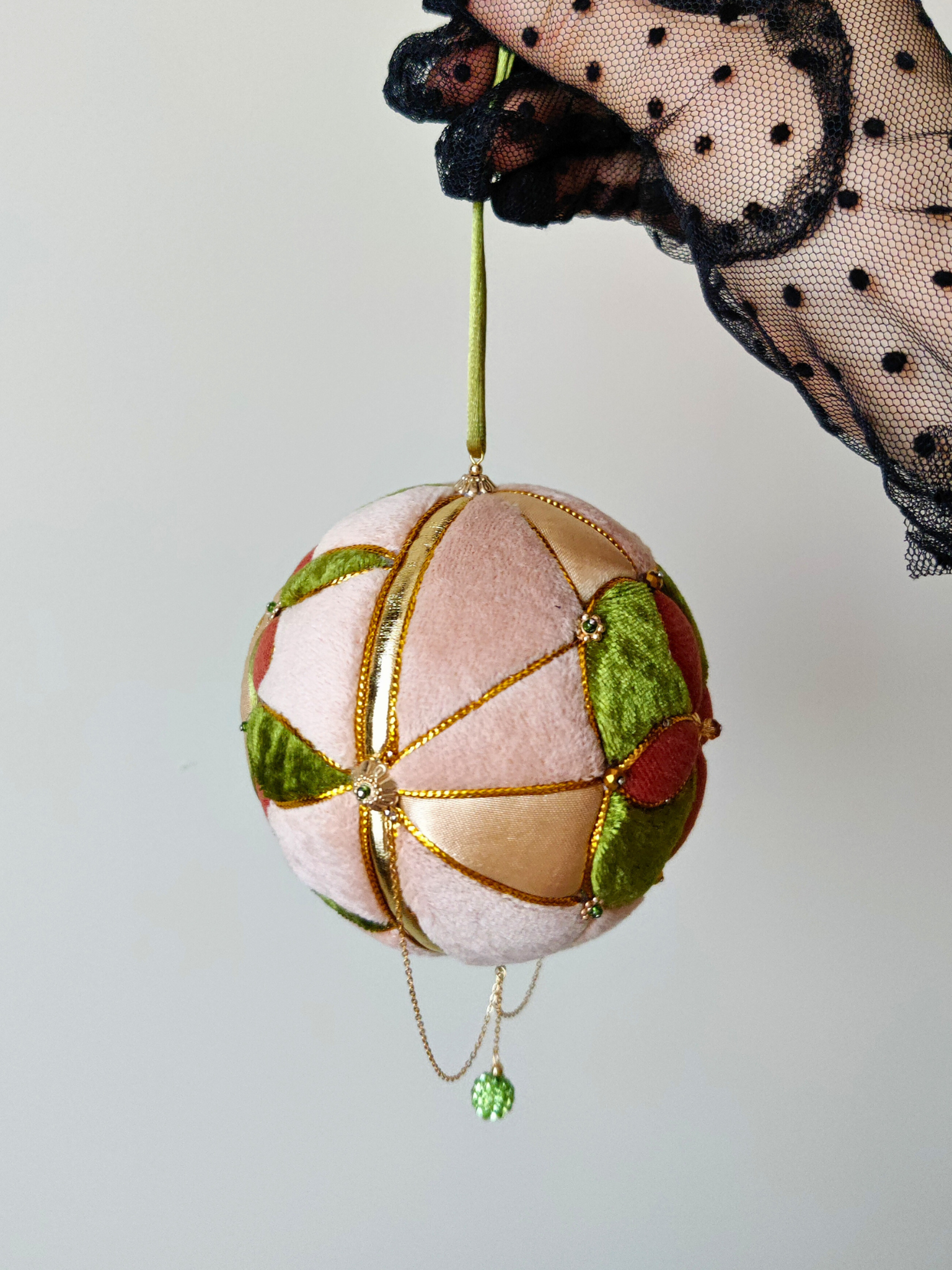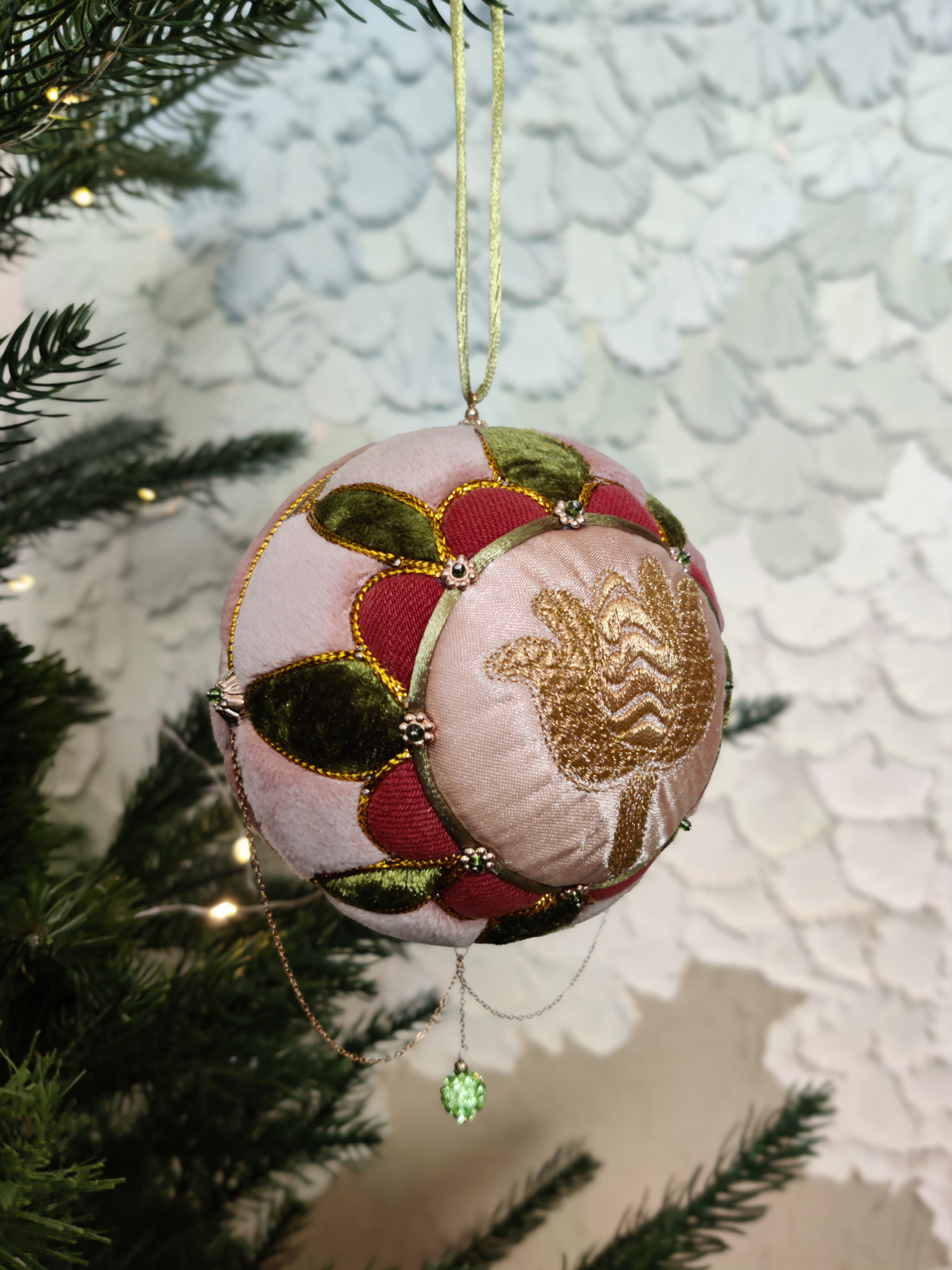 Išskirtinis rankų darbo eglutės žaisliukas, dekoruotas Kimekomi technika.